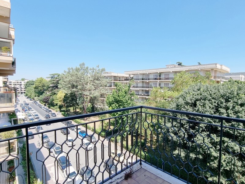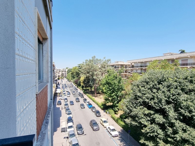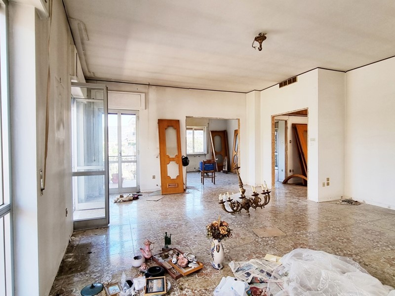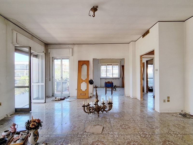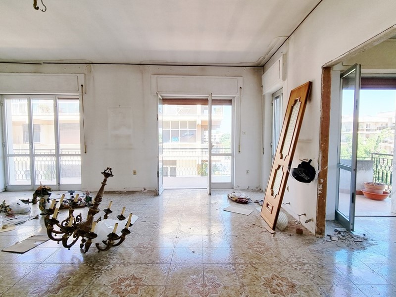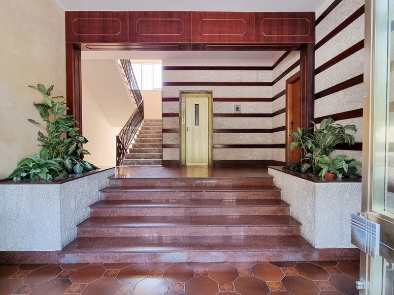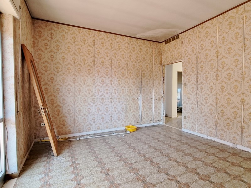 L'interno, da ristrutturare, presenta un ampio soggiorno, una cucina abitabile, uno studio, tre camere da letto ed un salone doppio. I quattro balconi offrono un'ottima visuale luminosa grazie all'esposizione su tutti i quattro punti cardinali, perfetta per godersi momenti di relax all'aria aperta. Un plus unico di questa soluzione è il non avere fabbricati nelle immediate vicinanze degli affacci grazie alla presenza delle strade e dei giardini di parco Gabriella.