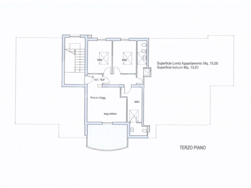 L'immobile sito al 3° piano senza ascensore è così composto: ingresso su luminoso soggiorno/cucina con accesso su terrazzo con meravigliosa vista mare, due camere matrimoniali, una cameretta e due bagni.