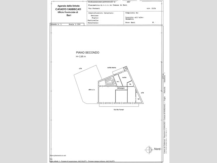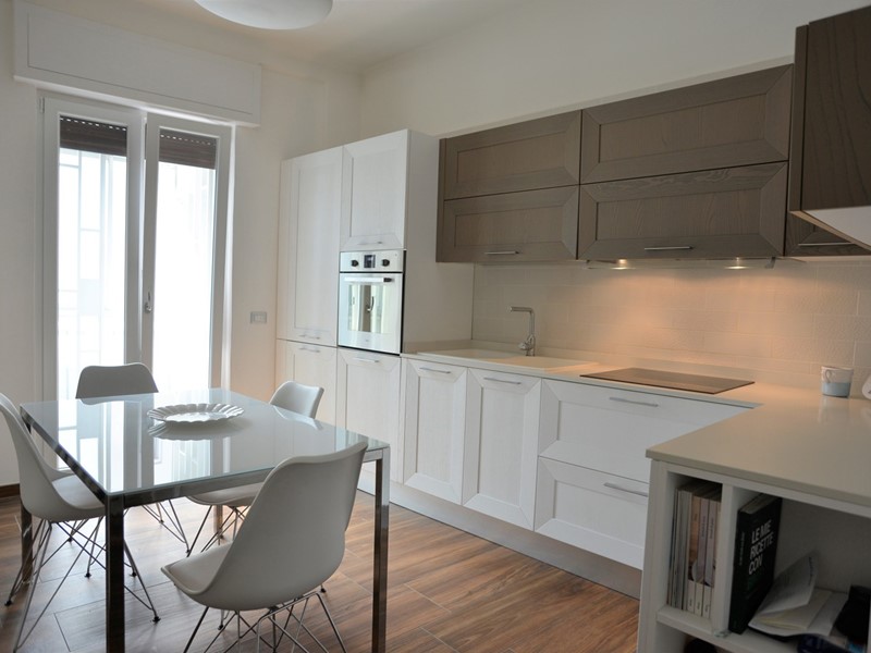 Nella zona murattiana, in Via Fornari, un angolo tranquillo e silenzioso nel pieno centro della città. Il raffinato appartamento è posto in uno stabile degli anni '50, piacevolmente affacciato sulla Piazzetta dei Frati Cappuccini. La casa è completamente ed accuratamente ristrutturata, è comoda, di mq. 115 ca, è posta a piano intermedio, ed ha affaccio sia sulla tranquilla piazzetta che all'interno dello stabile. Entrando ci accoglie l'ampio salone doppio, diviso in salotto e sala pranzo, affacciato su un balcone arioso prospiciente Via Fornari; la cucina è abitabile ed ha affaccio su un altro balcone interno anch'esso arioso. La zona notte è composta da due camere, anch'esse molto confortevoli. Il bagno è elegante, con un grande piatto doccia in ardesia, ed ha finestra. Il ripostiglio e la zona lavanderia sul balcone interno, completano le comodità della casa. L'appartamento è ben rifinito: la porta d'ingresso è blindata e le porte interne sono in legno massello; il pavimento è in gres porcellanato; gli infissi sono in alluminio con doppi vetri e zanzariere; il riscaldamento è autonomo con termosifoni in ghisa con le valvole termostatiche; è climatizzato; nel salone una cornice in cartongesso accoglie i faretti e funge da veletta per le tende.
