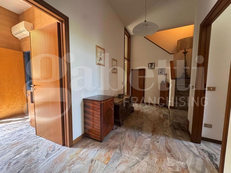 L'immobile si sviluppa su tre livelli ed è così composto; al piano terra troviamo l'ingresso sull'ampio e luminoso salone da cui si accede alla porzione di giardino privato, cucina abitabile, uno studio e il bagno.