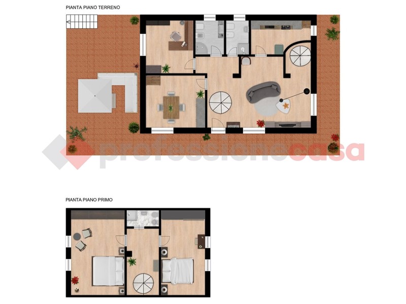 L'immobile si sviluppa su 3  livelli, per una metratura totale di circa 300 mq, ed è così composta: al piano rialzato ingresso living su soggiorno con camino a legna e angolo cottura, 2 camere e doppi servizi. Tramite scala interna si accede al piano superiore mansardato dove si trovano due ampie camere matrimoniali e un piccolo bagno di servizio. Al piano terra troviamo il box auto doppio e locale tecnico.