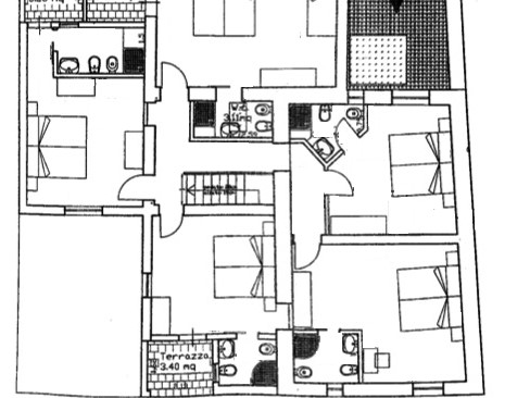 Il primo piano ospita altre cinque eleganti camere da letto, ciascuna con il proprio bagno privato, per un totale di otto stanze su entrambi i livelli, tutte dotate di abbondante illuminazione naturale grazie alle finestre. L'arredo, raffinato e ricercato, distingue ogni ambiente, creando un'atmosfera accogliente e rilassante, dove ogni dettaglio è studiato per garantire il massimo comfort.