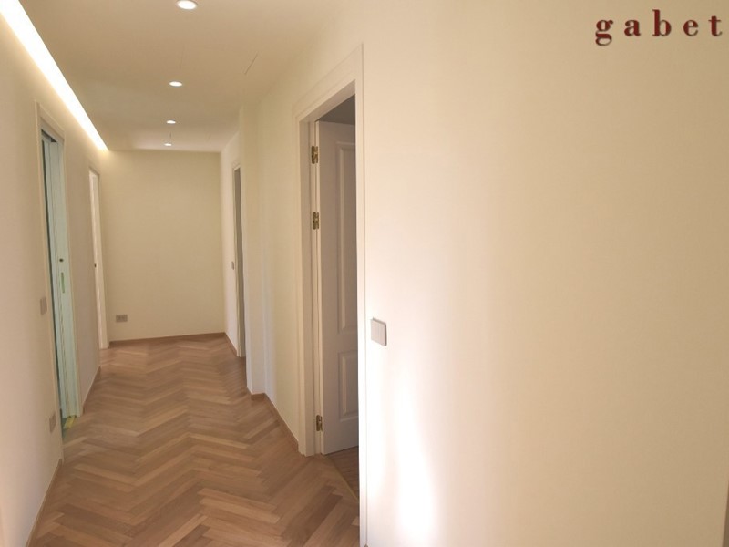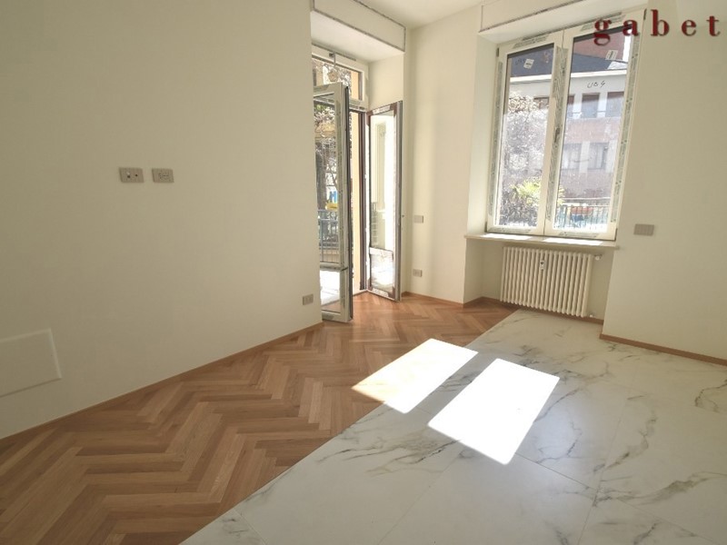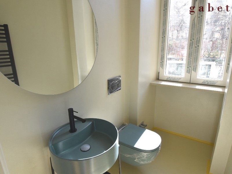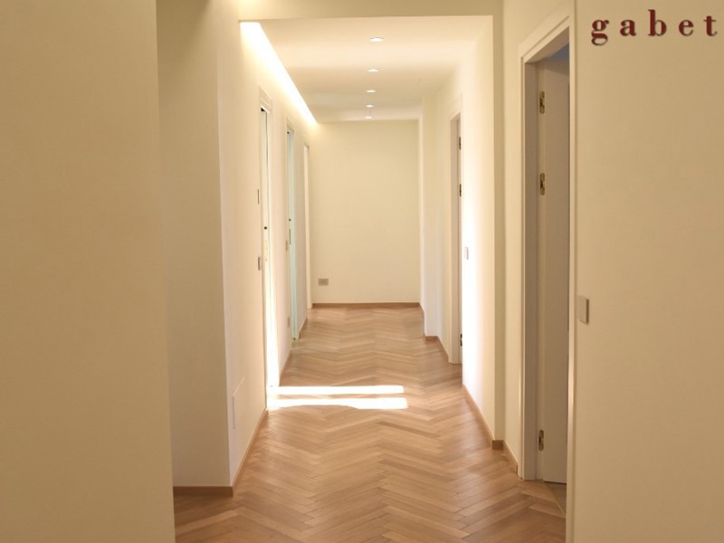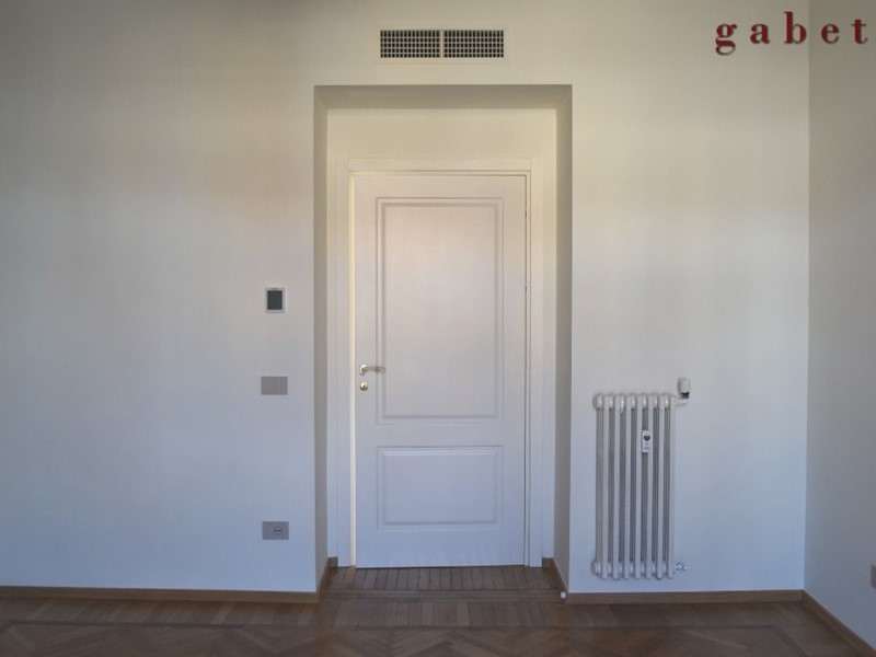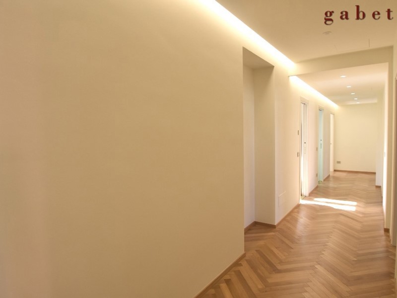 L'appartamento con la sua generosa metratura è disposto su unico livello e composto da 5 locali oltre doppi servizi, terrazzo e cantina al piano interrato. Ristrutturazione completa con materiali signorili, cercando di mantenere anche alcune finiture originali come cornici e soffitti.