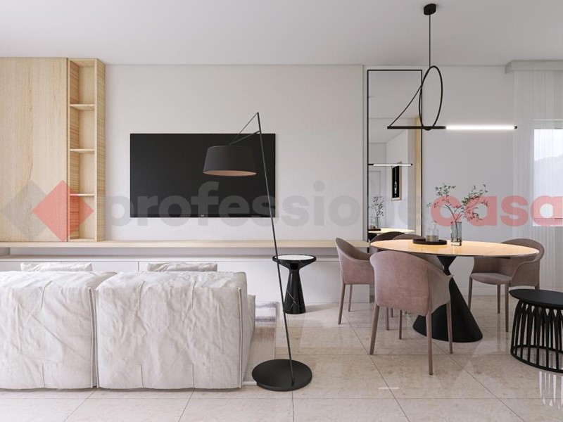 Al primo livello, il cuore della casa è il salone doppio, luminoso e spazioso, che gode di una ampia finestra, perfetta per ammirare la vista panoramica.