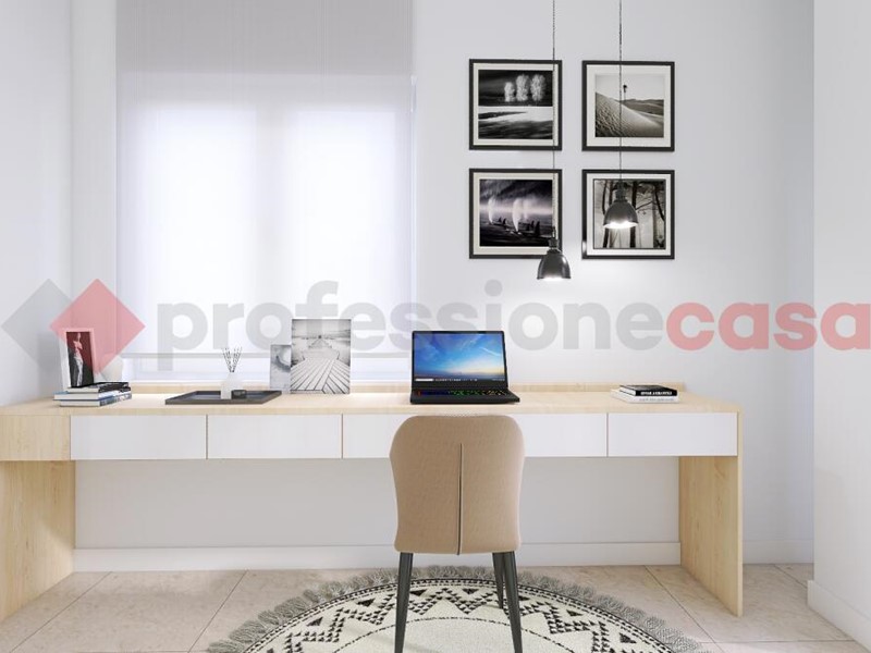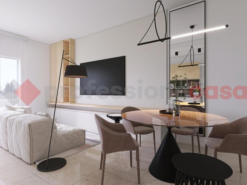 La zona giorno comprende anche una cucina abitabile con annessa lavanderia e bagno di servizio e dotata di balcone.
