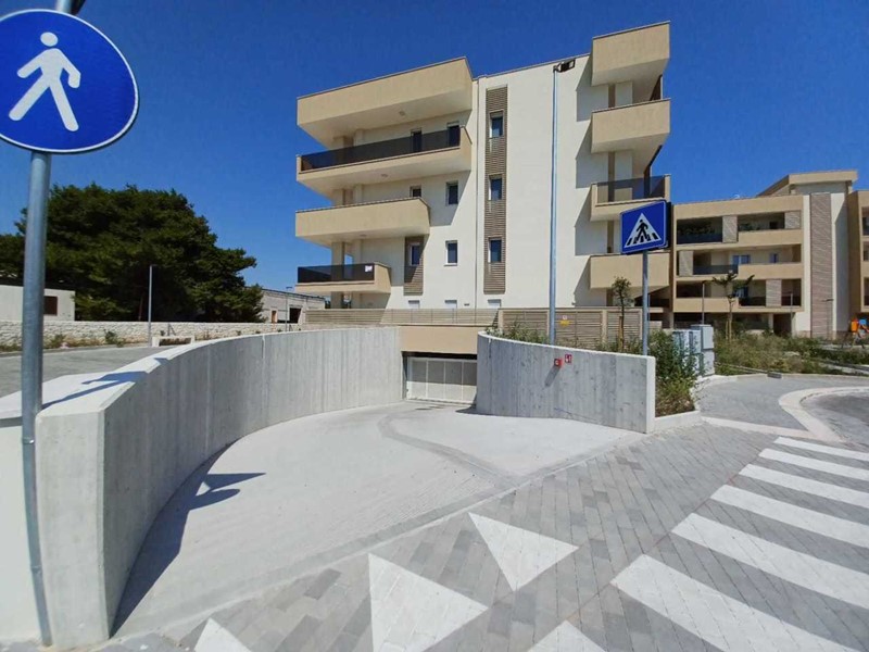 In complesso residenziale di nuova costruzione, proponiamo in vendita box auto di mq 36 circa composto da zona riservata al parcheggio e retrostante cantina. Impianto idrico, serranda motorizzata, accesso da doppia e comoda rampa con 2 accessi.