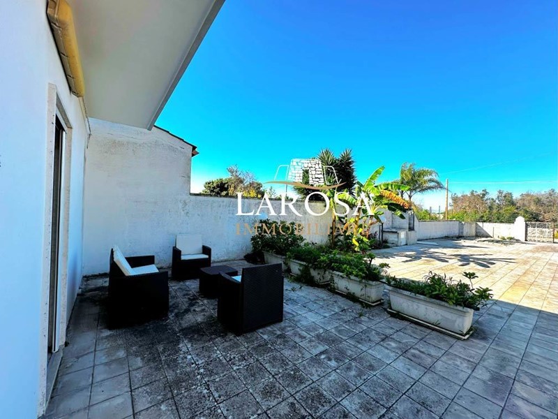 •proprietà completamente recintata con un muro alto circa 2 metri, cancello pedonale/carrabile nell'ampio giardino antistante, con possibilità di parcheggiare diverse auto nell'ampia area pavimentata.
