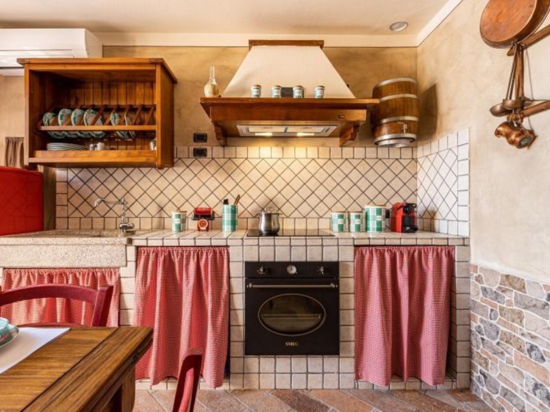 Il piano terreno si compone di una caratteristica cucina in muratura dotata di ogni comfort un angolo relax ed un caratteristico bagno di originale design.