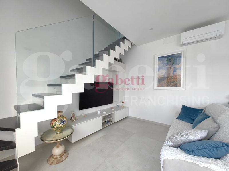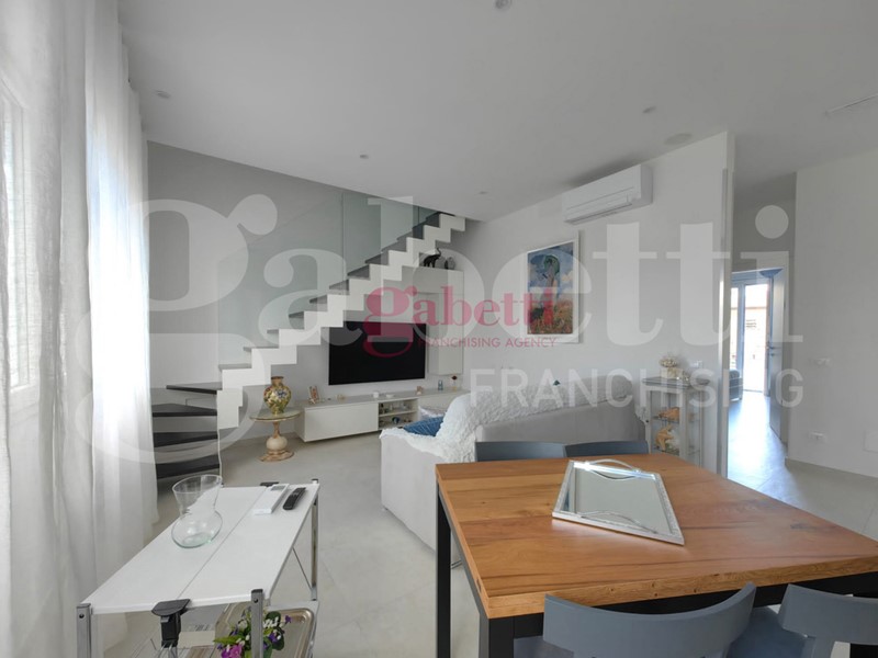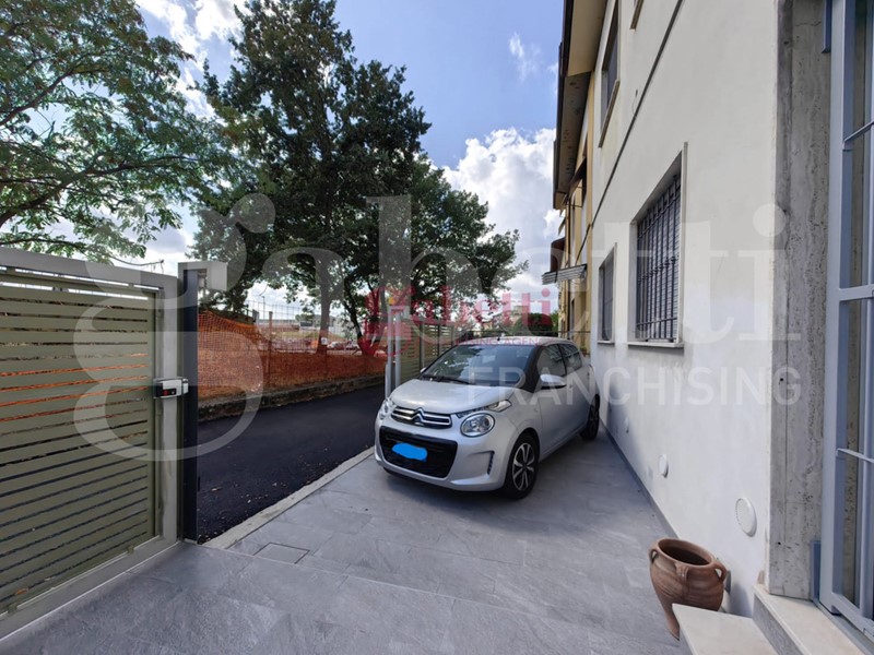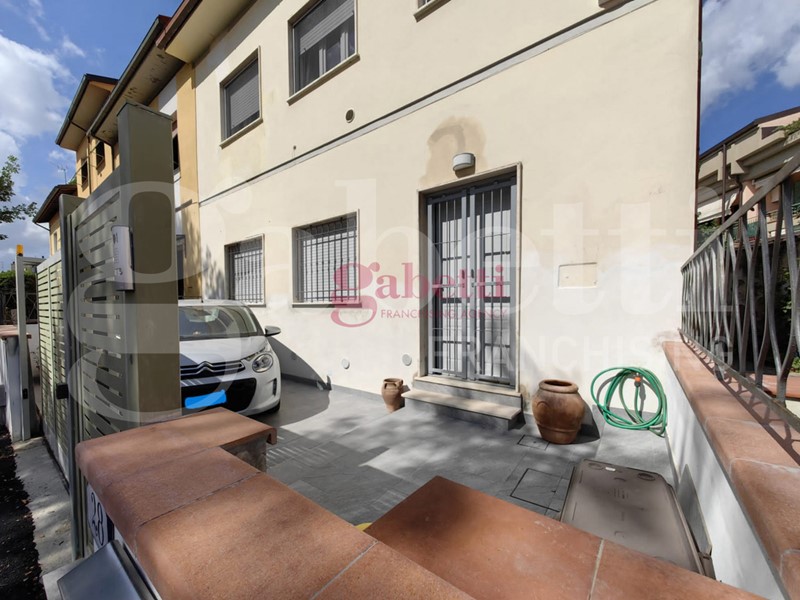 TERRATETTO CON INGRESSO INDIPENDENTE DI TRE LOCALI RISTRUTTURATO CON BALCONE MANSARDA E RESEDE/POSTO AUTO. SESTO FIORENTINO, pressi campo sportivo, a due passi dal centro e vicinissimo al parco del N eto, vendiamo splendido e luminosissimo terratetto con ingresso indipendente di tre locali finemente ristrutturato, disposto su più livelli. L'immobile ha accesso indipendente da stradina interna ad uso solo dei residenti; tramite ingresso sia da cancellino pedonale che da passo carrabile privato si accede a resede di proprietà di circa 30 mq; internamente è così composto: ingresso al piano terra dove nel disimpegno troviamo dei comodissimi ripostigli ed una cantina sottoscala, salendo al primo piano troviamo un bellissimo ampio salone doppio di circa 25 mq con cucina a vista e scala in legno e vetro che conduce alla mansardina ad uso studiolo, una grande camera matrimoniale dotata di cabina armadio e balcone con affaccio sull'interno, bagno finestrato con doccia e comodissimo ripostiglio ad uso lavanderia. L'immobile è stato ristrutturato nel 2023 ed è dotato di pompe di calore caldo/freddo, riscaldamento autonomo con caldaia a condensazione, infissi a taglio termico con vetro doppio, impianto di filodiffusione, videocitofono e impianto di allarme. Nessuna spesa condominiale. Passo carrabile già autorizzato per il parcheggio nel resede di proprietà. Vicinissimo a tutti i servizi di prima necessità, ma comunque in zona tranquilla e nel verde.
