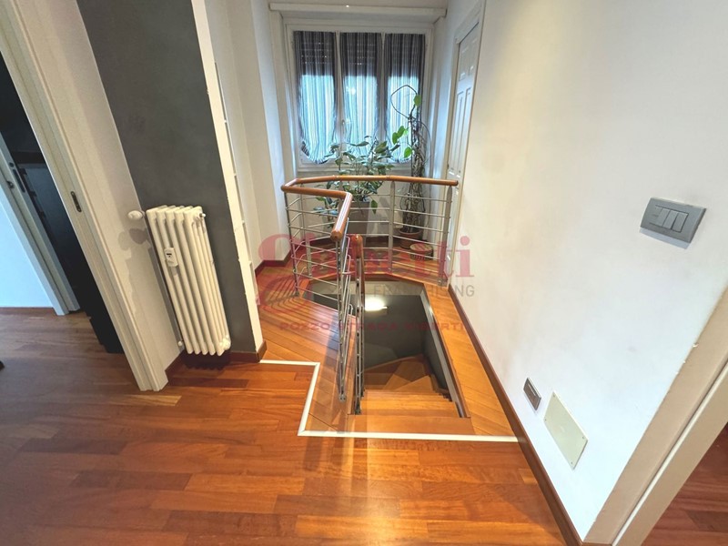 ? Appartamento su due livelli completamente ristrutturato nel 2012 con materiali di pregio e curato nei minimi dettagli. Gli infissi interni sono in legno, mentre quelli esterni sono in legno con doppi vetri. La porta d'ingresso è blindata. L'impianto di riscaldamento è centralizzato con termovalvole ed è presente il climatizzatore nel soggiorno e nelle camere da letto.