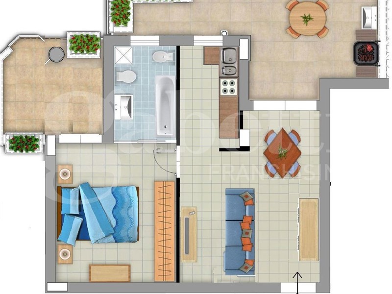 Latina Scalo, Via dell'Olmo - Vicinissimo alla stazione ferroviaria, ottimo uso investimento in quanto già locato a persona referenziata, disponiamo la vendita di un appartamento di recente costruzione posto al secondo piano con ascensore, completamente arredato. Ingresso nel soggiorno con angolo cottura e accesso al terrazzo, camera matrimoniale con balcone, bagno finestrato. Rifiniture di pregio. Struttura portante in cemento armato antisismico. Infissi in alluminio doppio vetro ad isolamento termico. Impianto di aria condizionata. Pannelli solari per la produzione di acqua calda. Videocitofono. Posto auto scoperto recintato. Classe Energetica: D. La soluzione è visionabile previo appuntamento. LOCATO AD ? 550 MENSILI FINO AL 31/03/2031.