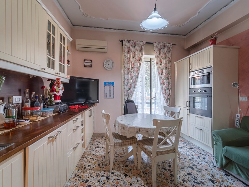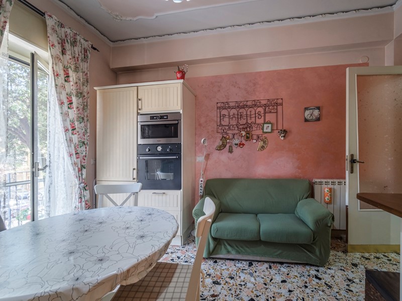 Posto al primo piano di una piccola palazzina, l'immobile si compone di ingresso su corridoio, cucina abitabile, soggiorno, due camere da letto, bagno e due balconi.