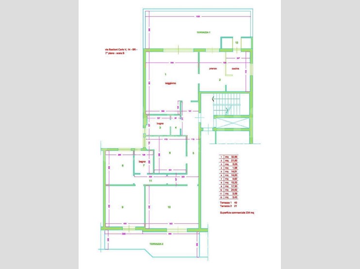 Superficie commerciale 234 mq, comprensiva di due terrazzi a livello di 40 e 21 mq.