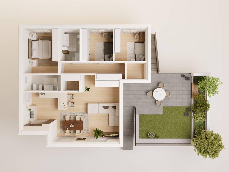 In una delle zone più ricercate ed ambite di Udine proponiamo in vendita due tricamere in bifamiliare di nuova costruzione, posizionata internamente rispetto alla strada, così da garantire massima tranquillità e riservatezza. La costruzionesarà antisismica e verrà realizzata in edilizia tradizionale con sistema denominato bloccocassero che prevede un doppio isolamento: interno ed esterno. Gli appartamenti, gas free, saranno edificati seguendo le migliori tecnologie green e risulteranno in classe energetica A4, saranno dotati di impianto fotovoltaico da 6KW (per ogni unità) con predisposizione per l'installazione di eventuali batterie d'accumulo e colonnine ricarica auto. Serramenti triplo vetro in legno/alluminio ad alta efficienza energetica, in grado di garantire ottime prestazioni dal punto di vista termico ed acustico e dotati di sistema di microventilazione integrato. L'impianto di riscaldamento sarà a pavimento con pompa di calore, sarà previsto l'impianto di climatizzazione bi-zona e l'impianto elettrico risulterà gestibile da remoto. Le coperture piane saranno impermeabilizzate con telo di Poliolefine. L'appartamento al piano primo sarà composto da: ingresso sulla spaziosa zona giorno open space dotata di comodissima dispensa, disimpegno notte, tre camere, due bagni, ripostiglio/lavanderia. All'esterno, collegato direttamente all'abitazione, sarà presente il grande terrazzo (in parte giardino pensile) ideale per momenti di relax e cene in compagnia, che sarà unito tramite una scala esterna al giardino di proprietà posto al piano terra con accesso diretto dal garage. Per finire, sempre al piano terra, troveremo il posto auto scoperto. Le finiture delle due unità saranno di alto livello a scelta del cliente. Ottima infine l'esposizione. Consegna prevista Estate 2026. Le immagini presenti nel seguente annuncio risultano puramente illustrative.