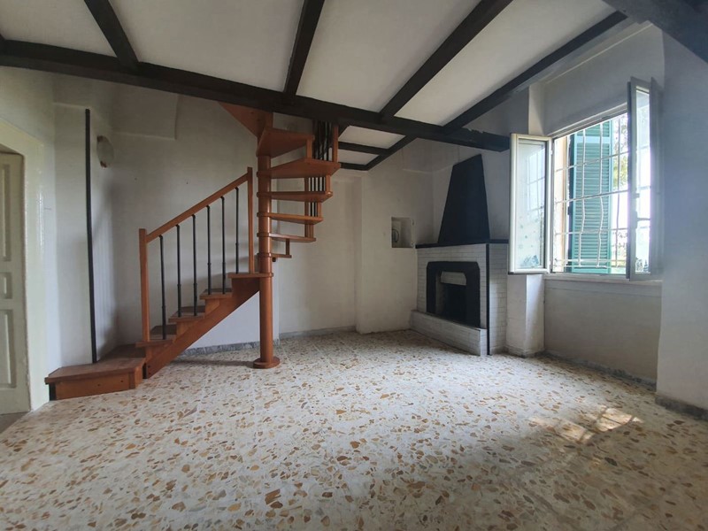 Nel salone sono presenti un soppalco in legno ed un elegante camino.