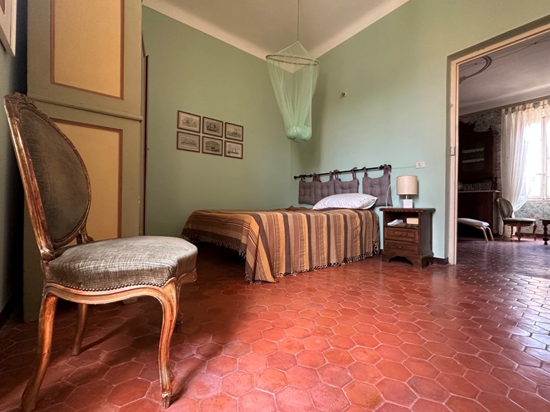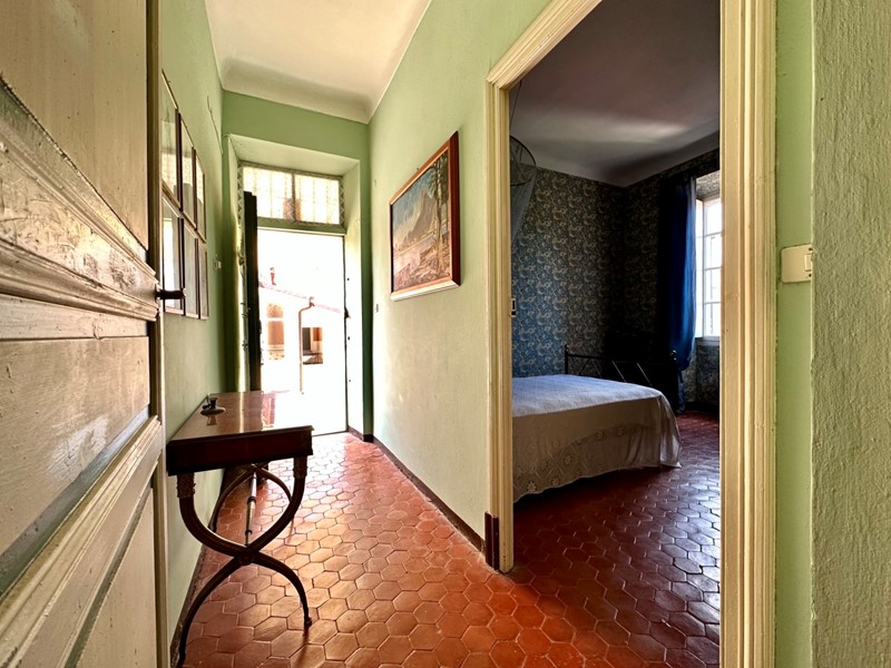 La casa che vi racconto è un appartamento al primo piano del palazzo padronale del borgo (non vi è l’ascensore).?Tutto su un livello, misura circa novanta metri quadrati. Forse di più. L’epoca di costruzione è anteriore al ‘900 e ne conserva tutto il fascino. I pavimenti sono piastrelle esagonali di cotto antico, molto ben conservate; i vani sono quattro e nel salone centrale troviamo un altro importante camino. Attualmente i muri sono rivestiti con tappezzeria d’antan, che amplifica il fascino degli ampi ambienti.