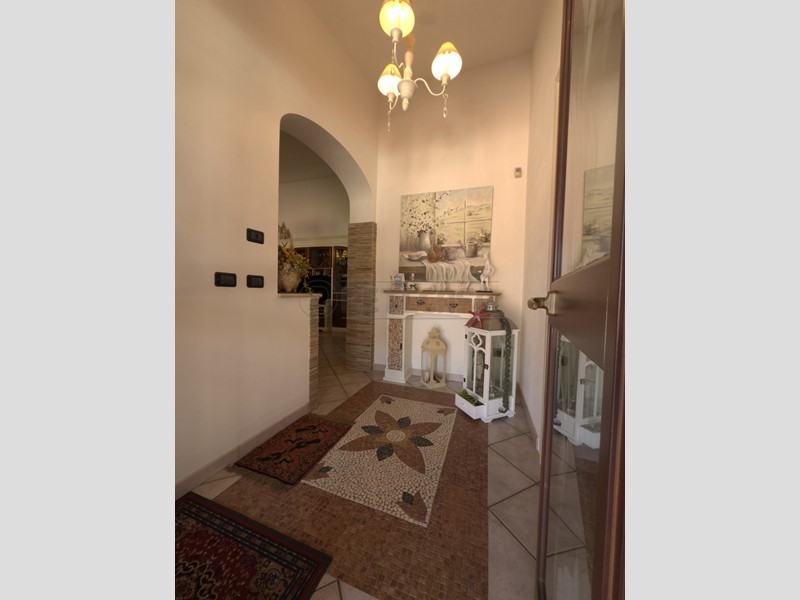 Internamente, la villa si sviluppa su 2 abitazioni + garage con depandance. L'abitazione principale di circa 110 metri quadrati piu veranda in legno fronte casa da 50mq con cucina in muratura e vista sulla piscina. Gli spazi interni sono suddivisi in ingresso, cucina in muratura completa /soggiorno, camera da letto matrimoniale, cameretta e bagno. La seconda abitazione è composta da un comodo trilocale con servizi ed una bellissima veranda esterna dotata di tutti i confort necessari.