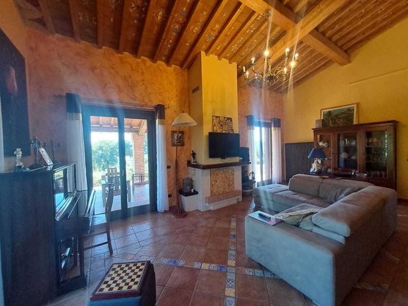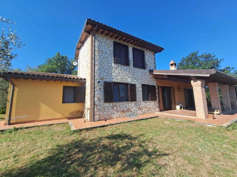 AMELIA - Nella prima campagna amerina, in posizione collinare, proponiamo in vendita una bellissima villa in perfetto stato con terreno recintato. Costruita nel 2008 La proprietà si sviluppa su 2 livelli. Al piano terra veniamo accolti da un ampio soggiorno con cucina abitabile e camino, 2 bagni con doccia, 1 camera patronale con bagno privato e cabina armadio, 2 camerette, lavanderia e ripostiglio. Attraverso la scala interna si accende al piano superiore dove troviamo un'altra camera di ampia metratura. Tutta la zona giorno è caratterizzata dal un bellissimo soffitto con un'altezza di 4 m. Se si porge lo sguardo verso l'alto, si nota la particolarità delle travi a vista con delicate decorazioni fatte a mano che rendono l'ambiente accogliente e unico nel suo genere. Dal soggiorno e dalla cucina si accede comodamente ai due portici ideali per le cene in compagnia durante le sere d'estate o per godere del semplice relax.
