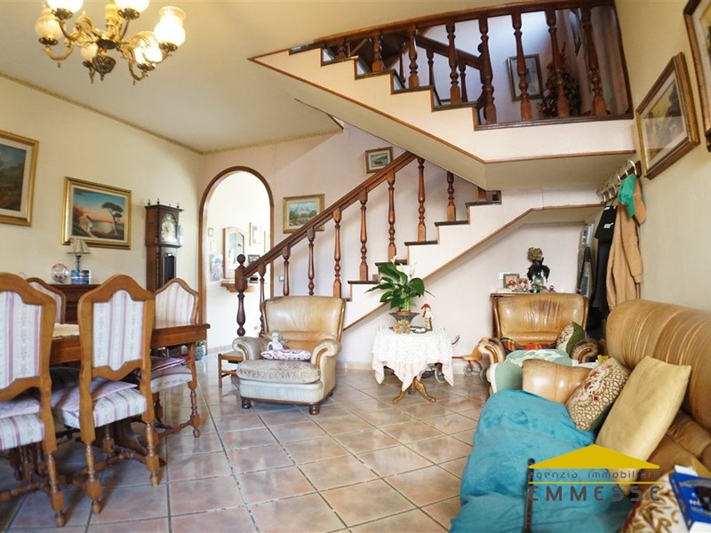 Massa, zona Esselunga, in posizione riservata dal traffico, villetta a schiera di testa con affacci liberi su tre lati e giardino privato di circa 60mq.\nL'immobile si compone di ingresso, ampio soggiorno, cucina abitabile e balcone in piano rialzato, due camere da letto, soppalco ad uso studio, bagno, ripostiglio ed ampio terrazzo angolare in piano primo.\nA completamento della proprietà si dispone di un ampio garage ed un'ampia cantina, attigui fra loro, in piano seminterrato. Spazio ideale anche per essere gestito ad uso taverna, attualmente con ingresso esterno ma predisposto per essere collegato internamente all'abitazione.\nRichiesta pari ad euro 180.000\nL'indirizzo riportato nell'annuncio è puramente indicativo nel rispetto della privacy dei nostri clienti - Per appuntamenti od ulteriori dettagli s'invita ad un contatto diretto telefonico al numero : 3472344249 - Agenzia Immobiliare EMMESSE con sede in Massa (MS) via Democrazia n.82\n - Maggiori Dettagli: Cantina, Bagno finestrato, Cucina Abitabile, Ripostiglio