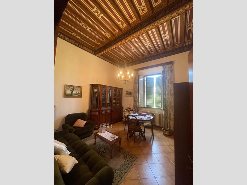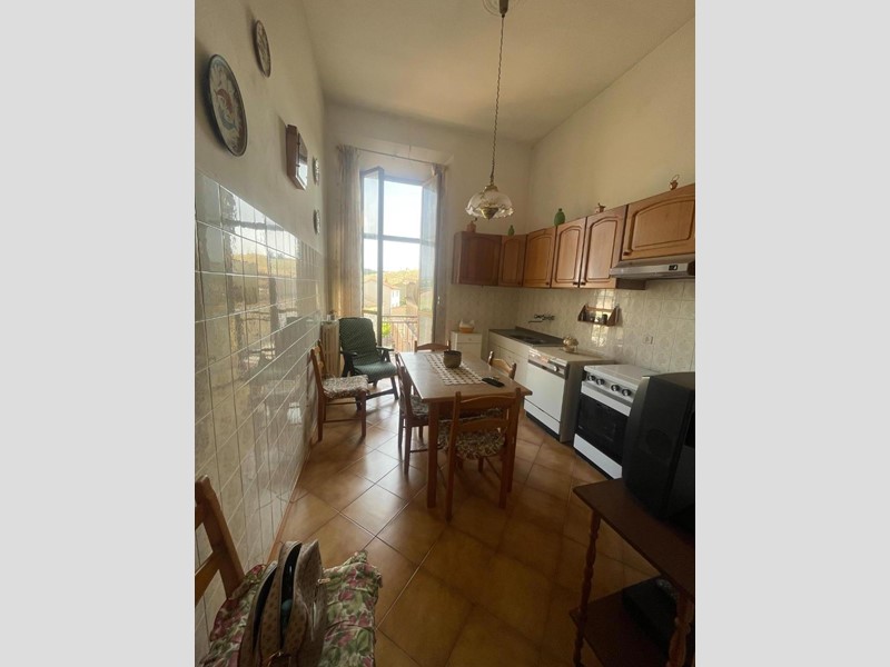 Dentro al paese di Torrenieri all’interno di un bel palazzo con ingresso signorile da ampia scala in travertino appartamento al primo piano con soffitti a travi con decori, ingresso nel disimpegno, cucina abitabile con terrazzo, soggiorno, camera matrimoniale con piccolo terrazzo, cameretta,ripostiglio e bagno finestrato, al piano terreno magazzino e cantina nel seminterrato.