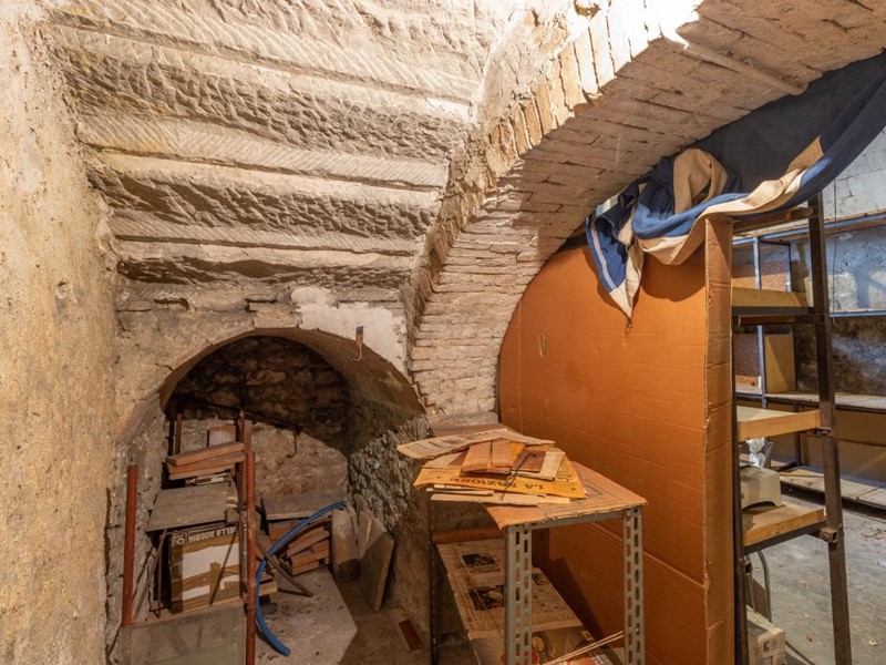 Arrivati al piano terra, si apre davanti a te una scala in marmo che permette il collegamento con i tre appartamenti sovrastanti. Mentre sulla sinistra della porta di ingresso trovi una porta che si collega con i locali sottostanti di circa 48 mq con volte in mattoni ed archi.