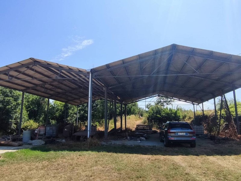 2) secondo fabbricato, sul lato opposto della strada, capannone aperto lateralmente/tettoia di circa 400 mq. Struttura in Acciaio.