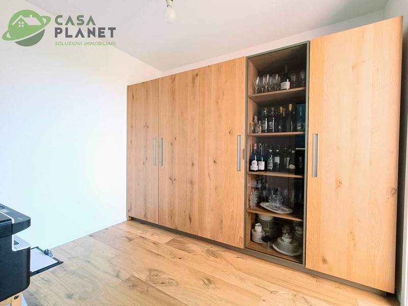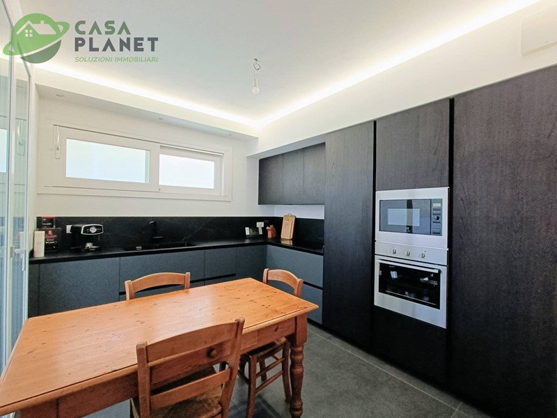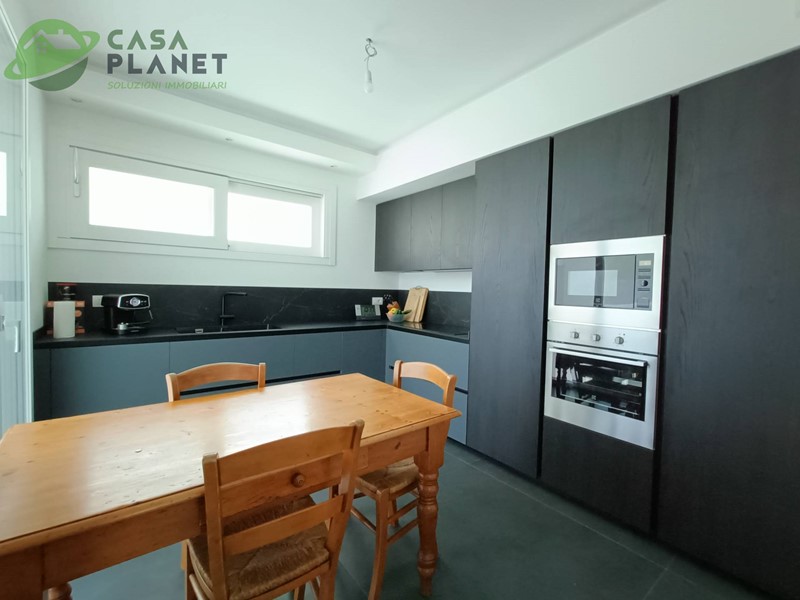 In chiave moderna ma signorile, con dotazioni di alta tecnologia, è composta, al piano terra, da un'ampia zona giorno di 50 mq., divisa fra soggiorno di 38 mq. e cucina di 12 mq. circa, bagno finestrato e garage di quasi 24 mq. con accesso interno. Posti auto interni.