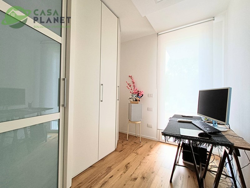 Al primo piano, invece, troviamo la camera padronale di 17 mq. con bagno in camera di 5 mq., stanza studio/guardaroba di quasi 9 mq., camera di 10,45 mq., camera di 9,10 mq., altro bagno finestrato. Completano l'immobile tre terrazze al piano primo di 9, 8 e 5 mq. circa. Fotovoltaico 6 Kw, impianto VMC completo, impianto di raffrescamento a pavimento completo, deumidificazione canalizzata, impianto di allarme volumetrico e perimetrale, predisposizione impianto di aspirazione centralizzata, serramenti in PVC e alluminio comprensivi di tende motorizzate e zanzariere, cancelli carrai motorizzati, videocitofono, rete LAN in tutte le stanze. Nell'abitazione è già presente la fibra.