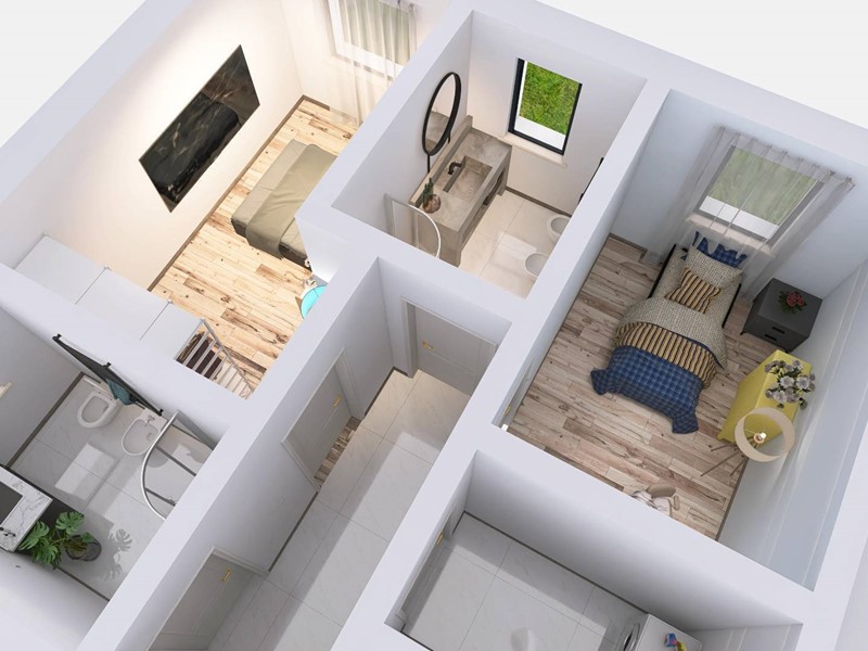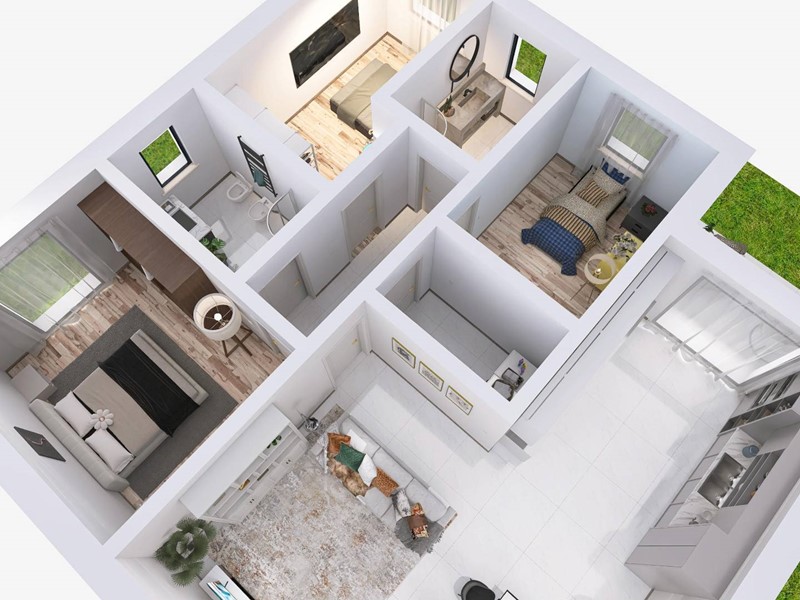 L'appartamento viene consegnato non arredato ma grazie al nostro servizio di virtual home staging troverai alcune foto che ti aiuteranno ad immaginare la personalizzazione degli spazi interni.