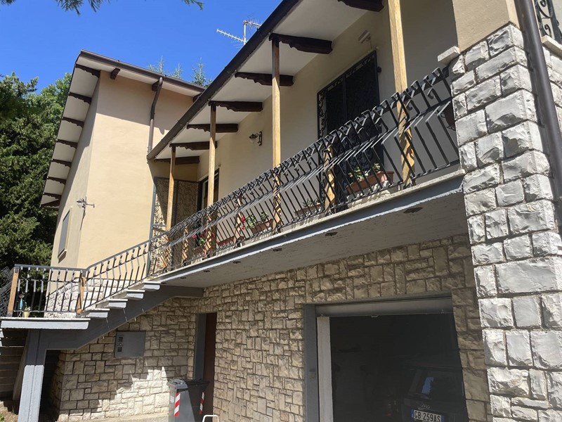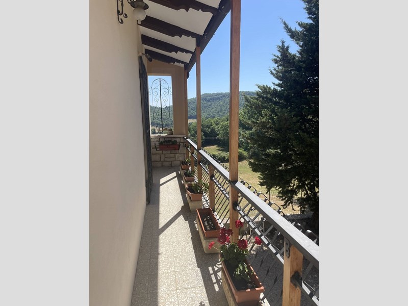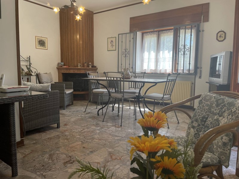 Piano primo: ingresso, luminoso soggiorno con camino e balcone panoramico, cucina abitabile con secondo camino e terrazzino, tre camere da letto (una con balcone), bagno e pratico ripostiglio. Completa la proprietà una soffitta sottotetto.