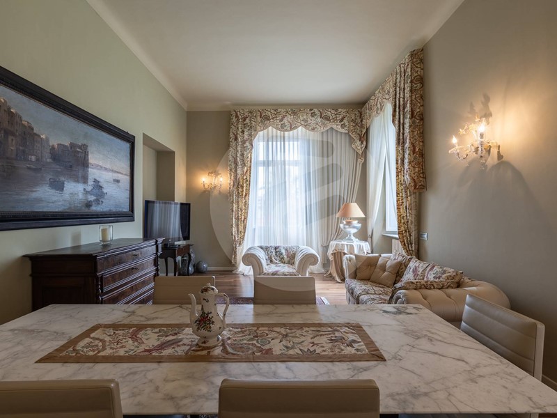 In elegante villa storica, completamente restaurata, a due passi dal mare e dal centro, proponiamo prestigioso appartamento sito al secondo piano servito da ascensore.
