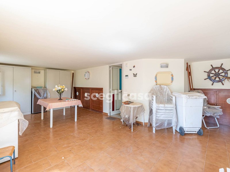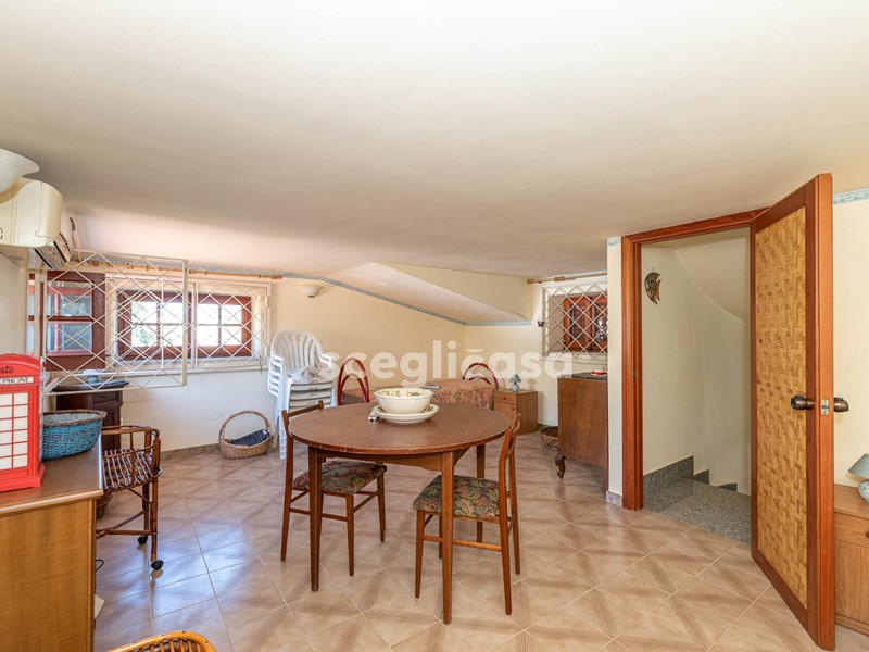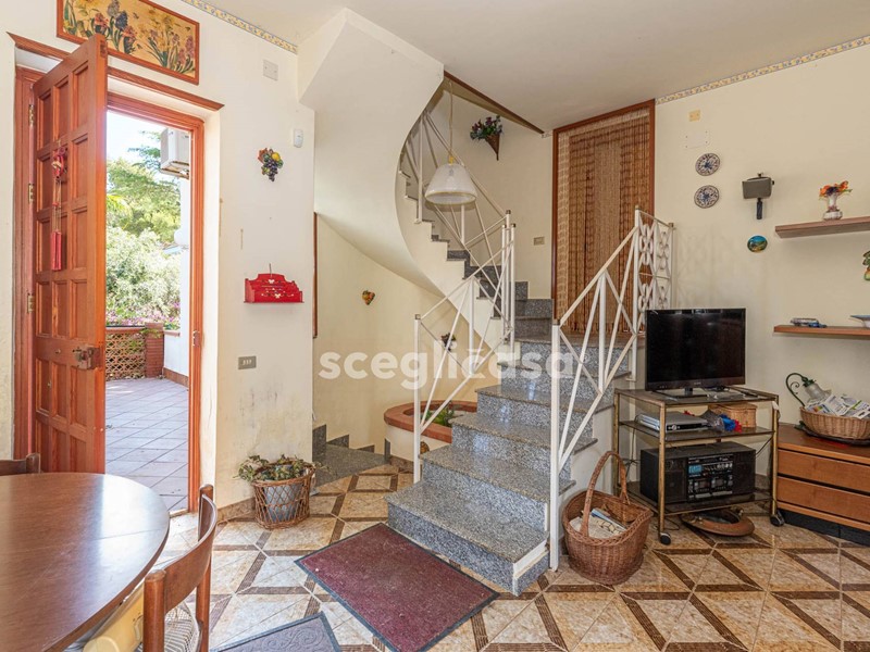 Internamente la villa ha una quadratura di 160mq, ed è divisa su 3 elevazioni, con spazi interni molto funzionali: al piano seminterrato si ha un locale di sgombero, una cantina per riporre al sicuro attrezzi o prodotti di uso quotidiano, ed infine un bagno; al piano rialzato dove si svolge l'abitazione ed è composo da: cucina, salone, 2 camere da letto, 2 bagni con doccia di cui uno in camera; da una scala a chiocciola comoda interna si accede al primo piano, c'è la mansarda con 2 camere, dove è possibile adibirle in qualsiasi modo; al secondo piano ed ultimo si ha il terrazzo con una vista mozzafiato per godersi tramonti indimenticabili.