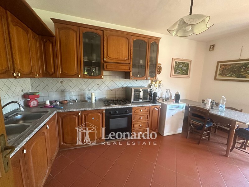 Ampio salone doppio con terrazza, cucina abitabile con accesso a terrazza e bagno con doccia.