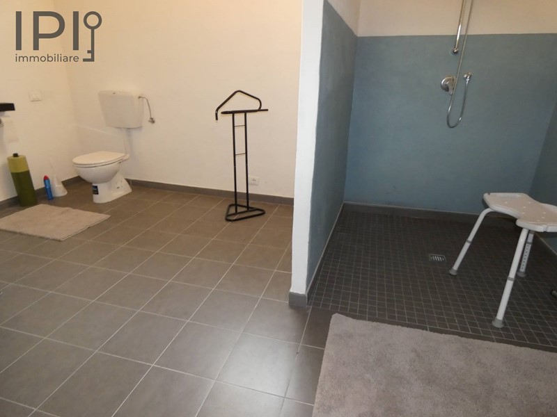 In questa ala, pavimenti in vecchie cementine rosse o in graniglia, a parte nel bagno che è in gres.