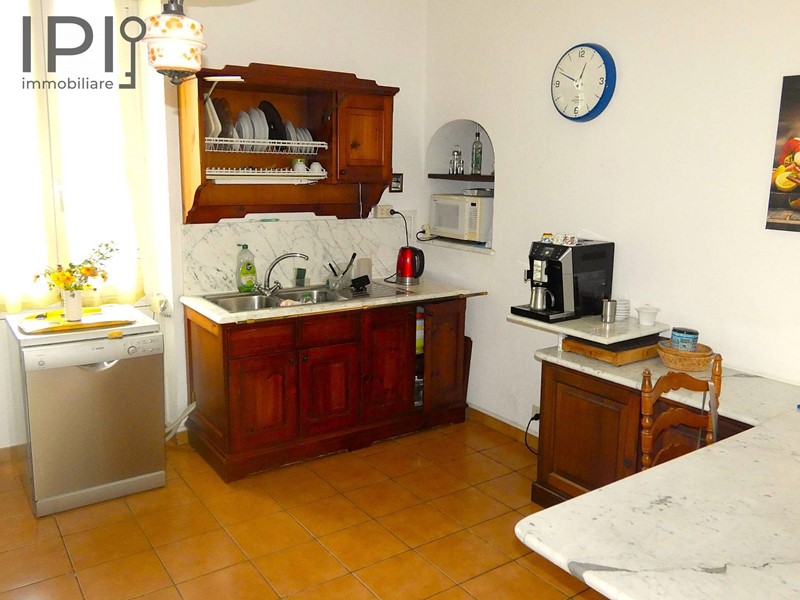 Possiamo parcheggiare 2 auto nel garage e dirigerci verso LA PRIMA UNITA' ABITATIVA. All'ingresso abbiamo iun locale guardaroba che ci rimanda alla cucina abitabile con forno a legna interno e piani e lavandino in marmo bianco, da qui procediamo verso la sala in stile marinaro, con una bella stufa nordica tipo stube e un'ampia vetrata apribile che guarda verso il giardino e l'orizzonte.