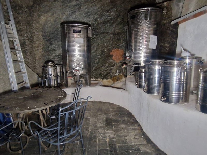 Collegata al primo fabbricato con un pontino troviamo la SECONDA PARTE ABITATIVA. Questa al piano terreno ha una bagno al piano strada ed una locale a cantina stupendo, in parte scavato a mano nella roccia, fresco d'estate e temperato d'inverno con le botti e l'occorrente per l'olio, lavabo etc. ideale per conservare vini, stagionare formaggi etc.