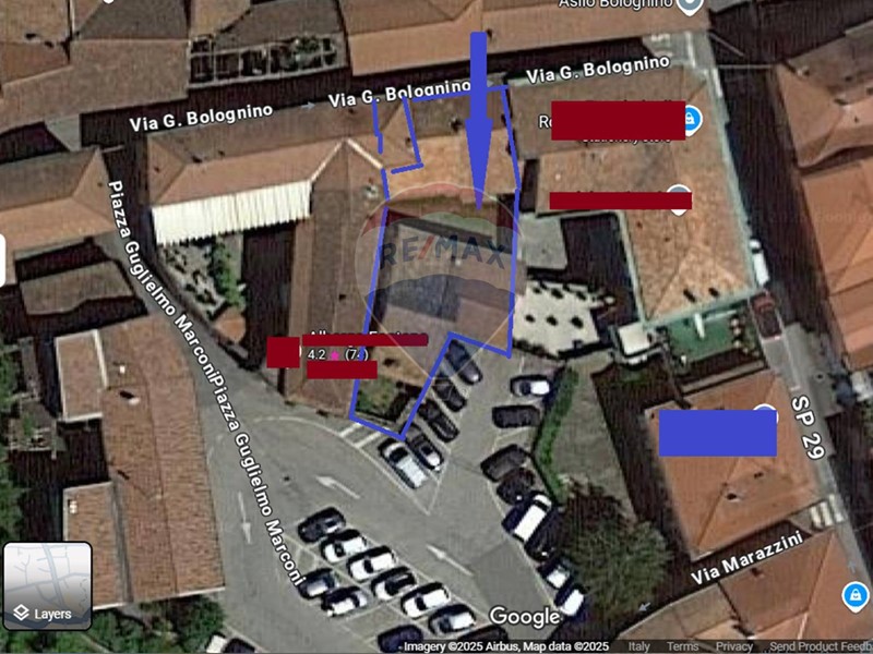 La proprietà è da ristrutturare , accesso carrabile dalla Via Bolognino e accesso pedonale dalla Piazza Marconi.