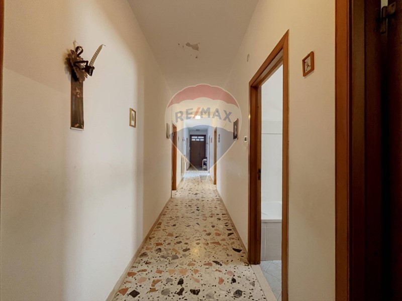 L'ingresso ci accoglie con un lungo corridoio dove ai lati sono posizionati i vani e precisamente: una cucina con balcone e un tinello, un ampio soggiorno, due camere matrimoniali , due bagni.