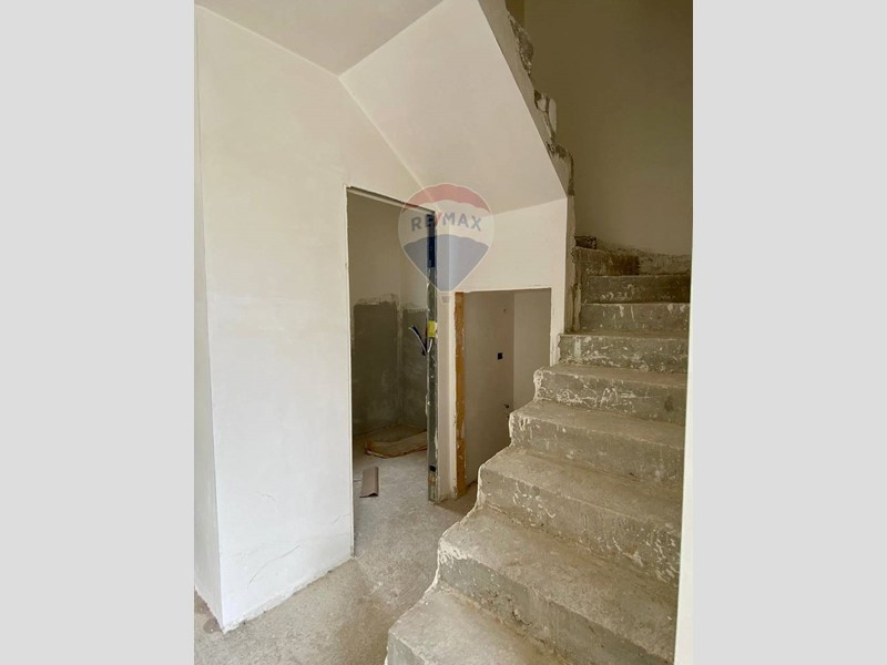 Dalla scala interna che verrà rifinita con ringhiera in ferro battuto e gradini in ceramica di gres a scelta del committente, si accede al primo piano con 2 camere da letto, una con finestra e l'altra con affaccio sul prospetto con balcone, un comodo bagno con finestra e doccia e una ulteriore cameretta con soppalco da adibire anche a cabina armadio secondo le esigenze del cliente.