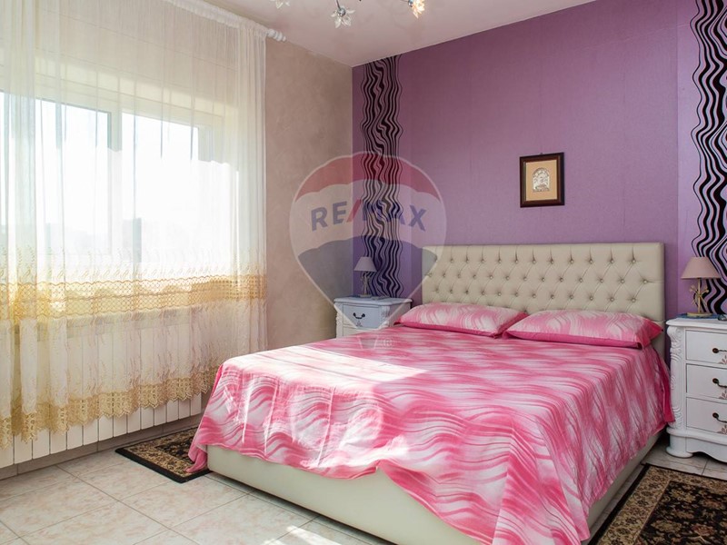 La zona notte, invece, è composta da tre camere da letto spaziose e luminose, di cui una con balcone privato, due bagni e un ripostiglio.
