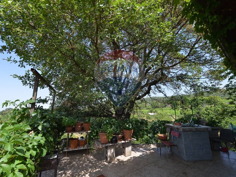 Il terreno a sud è pianeggiante con un piccolo ma curatissimo vigneto, a nord troviamo diversi terrazzamenti ricco di piante da frutta