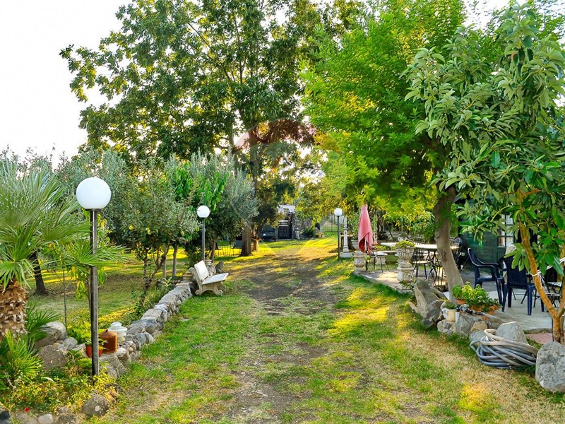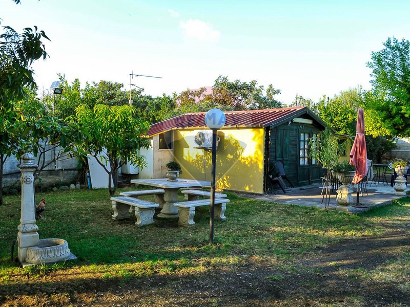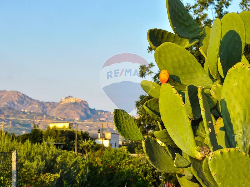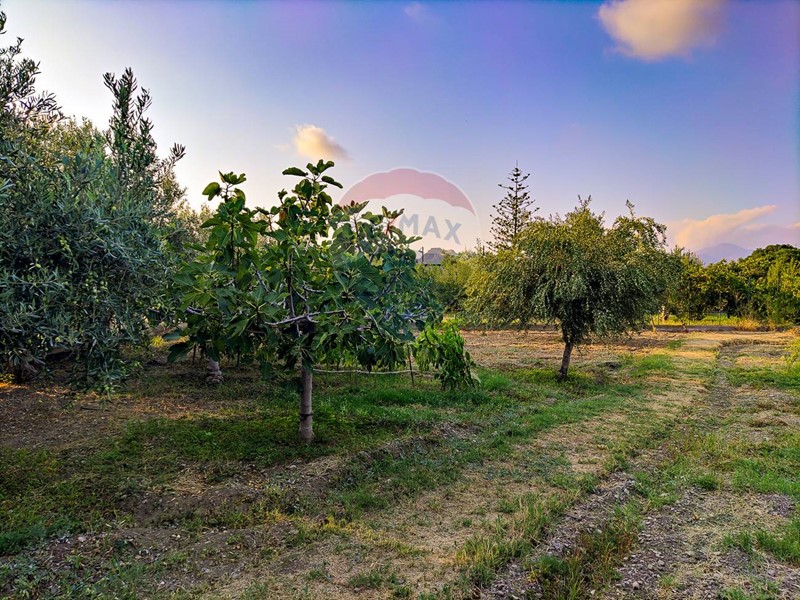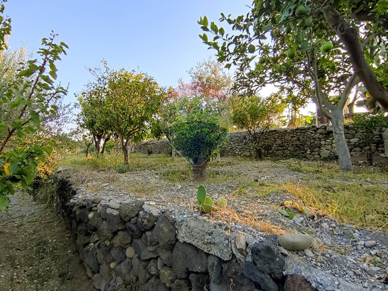 A Calatabiano, precisamente in Via Sciarella, adiacente alla SS 114, Terreno agricolo di mq 3.481 con frutteto, agrumeto e un prefabbricato in legno con una superfice interna mq 30 cosi composto: ingresso cucina soggiorno camera da letto matrimoniale e bagno. Il terreno si presenta pianeggiante per la gran parte del, la sua estensione e recintato sui quattro lati con ingresso un cancello in ferro. Dalla parte collinare si può vedere Taormina Castel Mola e l'Etna.
