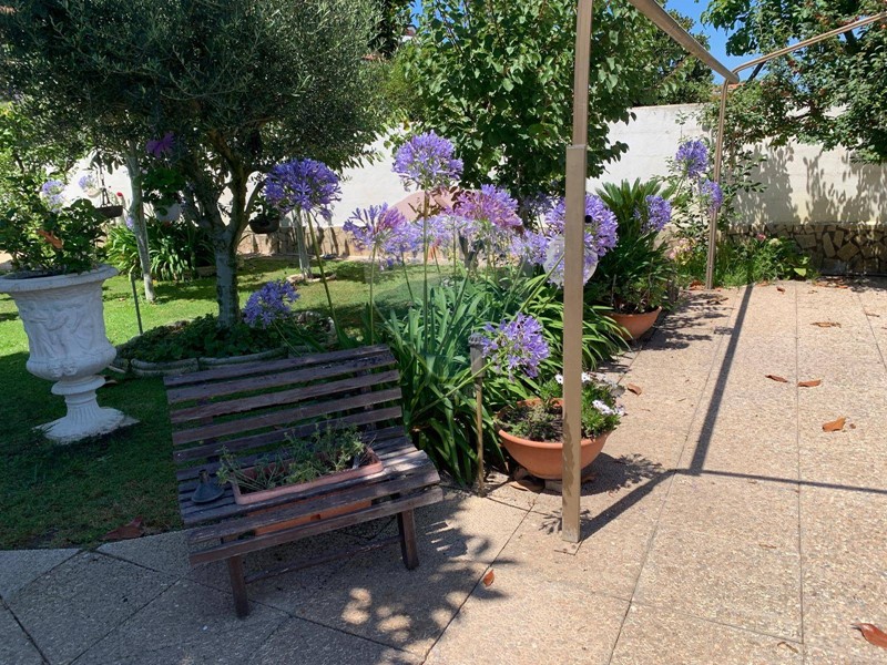 L'immobile con giardino di 500mq è dotato d'impianto di irrigazione, in parte lastricato con posto auto coperto e scoperto con alberi da frutto ci permette