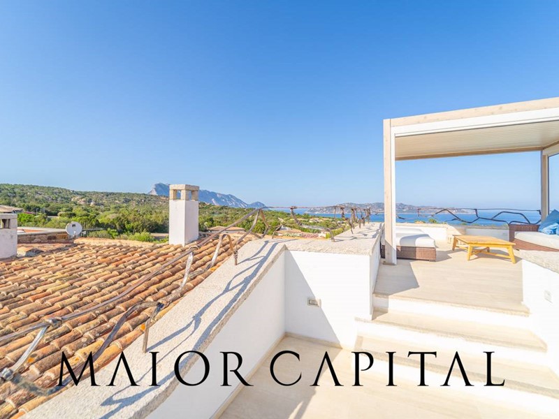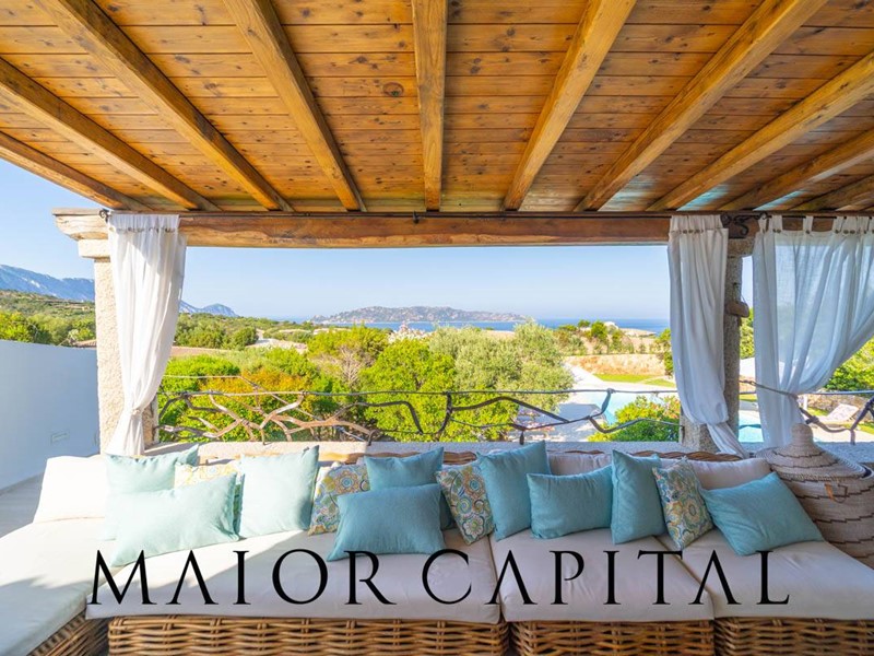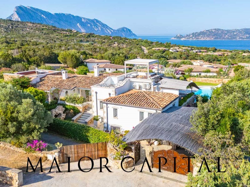 Allesterno, la proprietà si apre su un magnifico spazio con piscina privata, area barbecue e solarium panoramico, da cui godere di una vista mozzafiato sullisola di Tavolara.