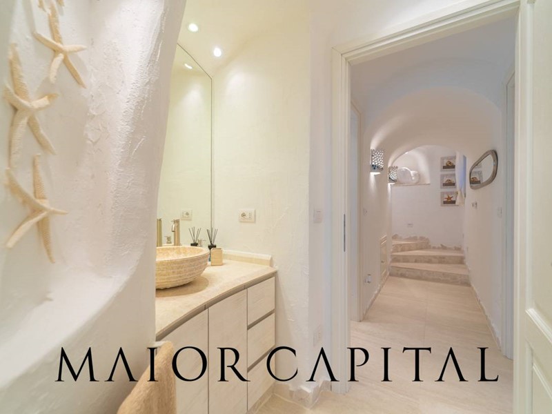 Libera su tre lati, la villa è stata progettata con grande attenzione ai dettagli, combinando il fascino autentico dello stile sardo con un'eleganza contemporanea. I pavimenti in pregiato marmo di Orosei donano luminosità e raffinatezza agli ambienti, conferendo unimpronta di classe a tutta la casa.