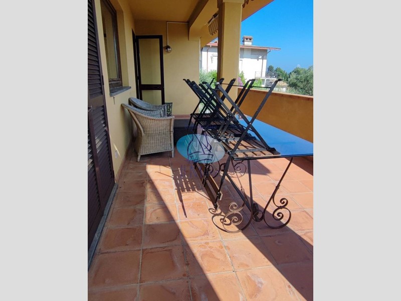 Sia dall'interno che da scale esterne raggiungiamo il piano primo pavimentato con parquet, dove troviamo una splendida terrazza vista mare, ideale per pranzi e per cene estive in compagnia di amici e parenti dove è possibile apprezzare la vista mozzafiato del mare e delle colline intorno.
