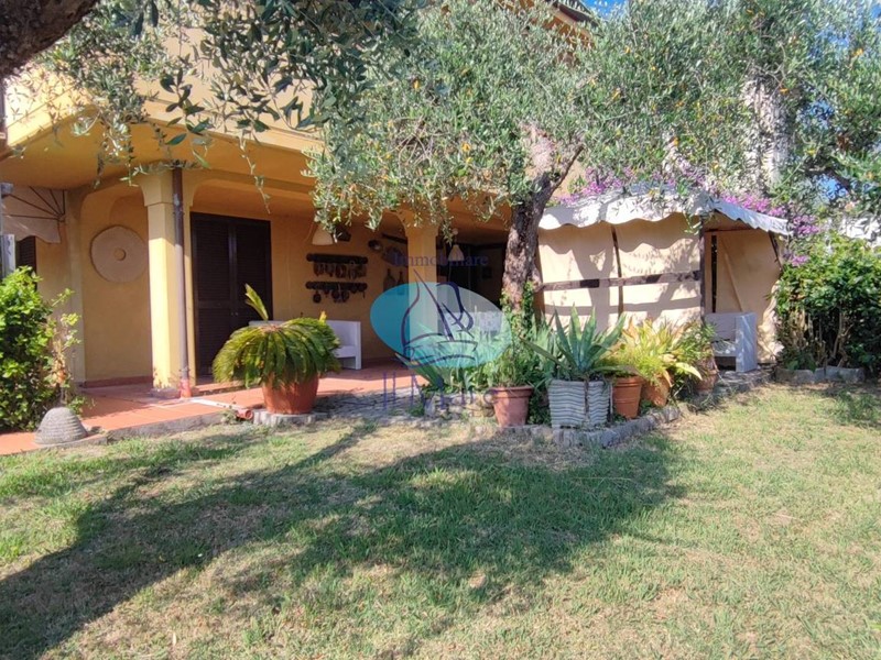 In zona tanquilla e immersa nel verde alla villa si accede da cancello carrabile automatico che ci introduce nella proprietà e nel giardino libero su quattro lati, con 2 comodi posti auto, un gazebo, un porticato che consente l'accesso al piano terra indipendente accatastato come scantinato con altezze 2,20 mt. con un grande soggiorno e un bellissimo camino, un'ampia cucina abitabile, disimpegno notte, un bagno completo con doccia e finestra, una comoda camera matrimoniale e una cameretta, pavimenti in cotto.