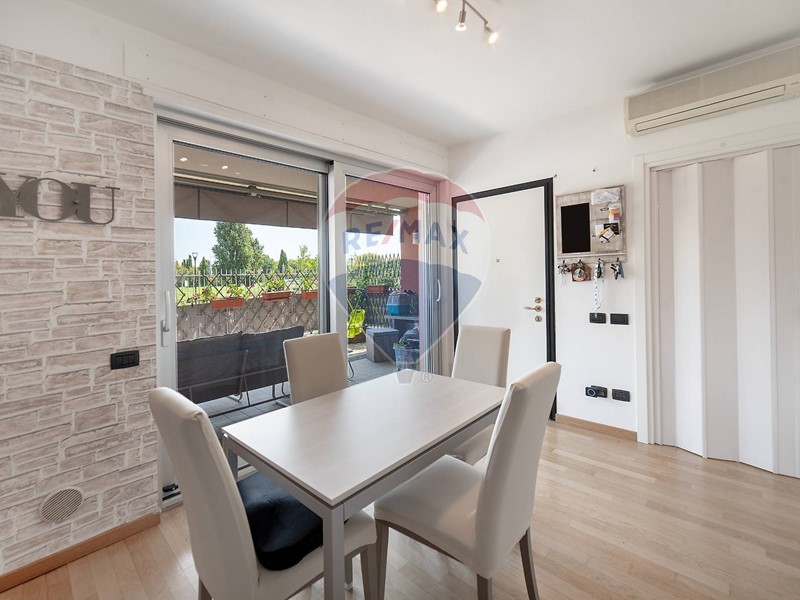Dal soggiorno si può accedere alla veranda , ideale per condividere e vivere momenti di relax all'aperto, mentre al secondo livello si trova un comodo e ampio terrazzo.