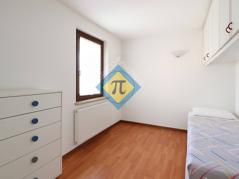 Si tratta di una comoda e versatile soluzione abitativa che dispone anche di un piccolo spazio esterno recintato e la possibilità di usufruire dell'ingresso con basculante motorizzato come posto auto coperto per due macchine.
