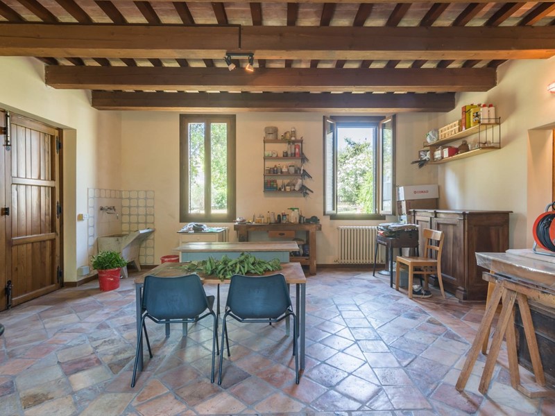 Gli ampi spazi, la luce naturale che illumina gli ambienti, il calore del cotto e del legno, l'armoniosa fusione di elementi antichi e moderni rendono questa villa un luogo unico dove storia ed arte si intrecciano con il presente.